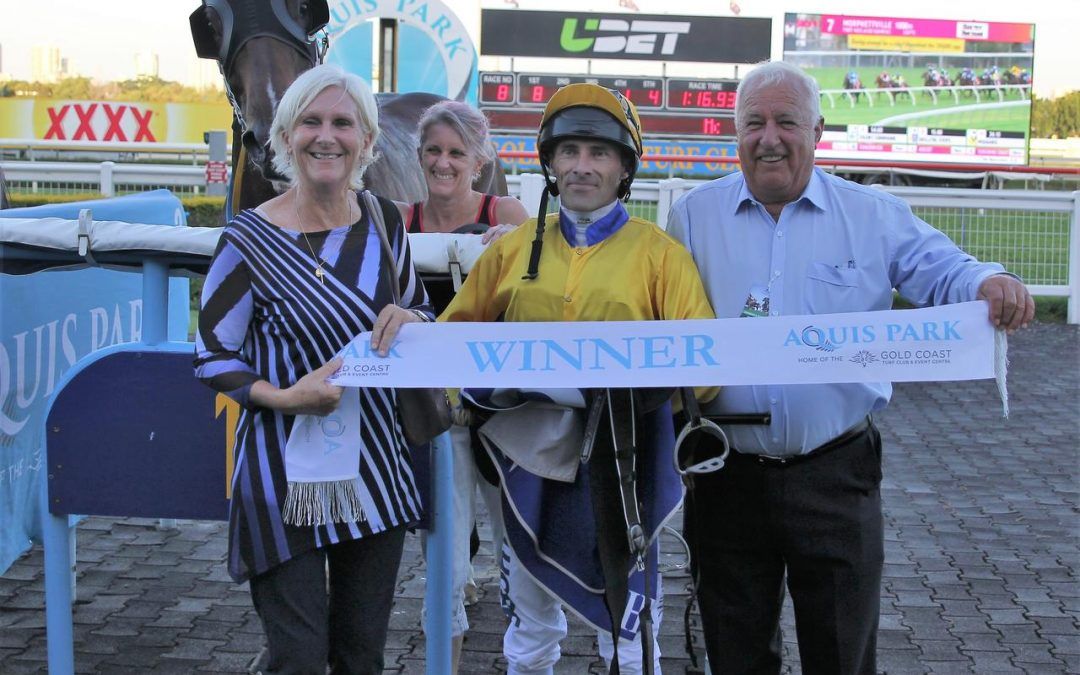 El Shaday was having his second start for Team Guy today and winning Co Trainer Bryan was a happy man after the event “I am glad he won today, we thought he could win first up when he ran third but he didn’t handle the wet track so today we were pretty confident, the only thing that concerned us was the barrier but Chris made light work of that. The horse himself has had a few problems but at the moment that all seems behind him so hopefully he can go on and work his way through his classes.”
